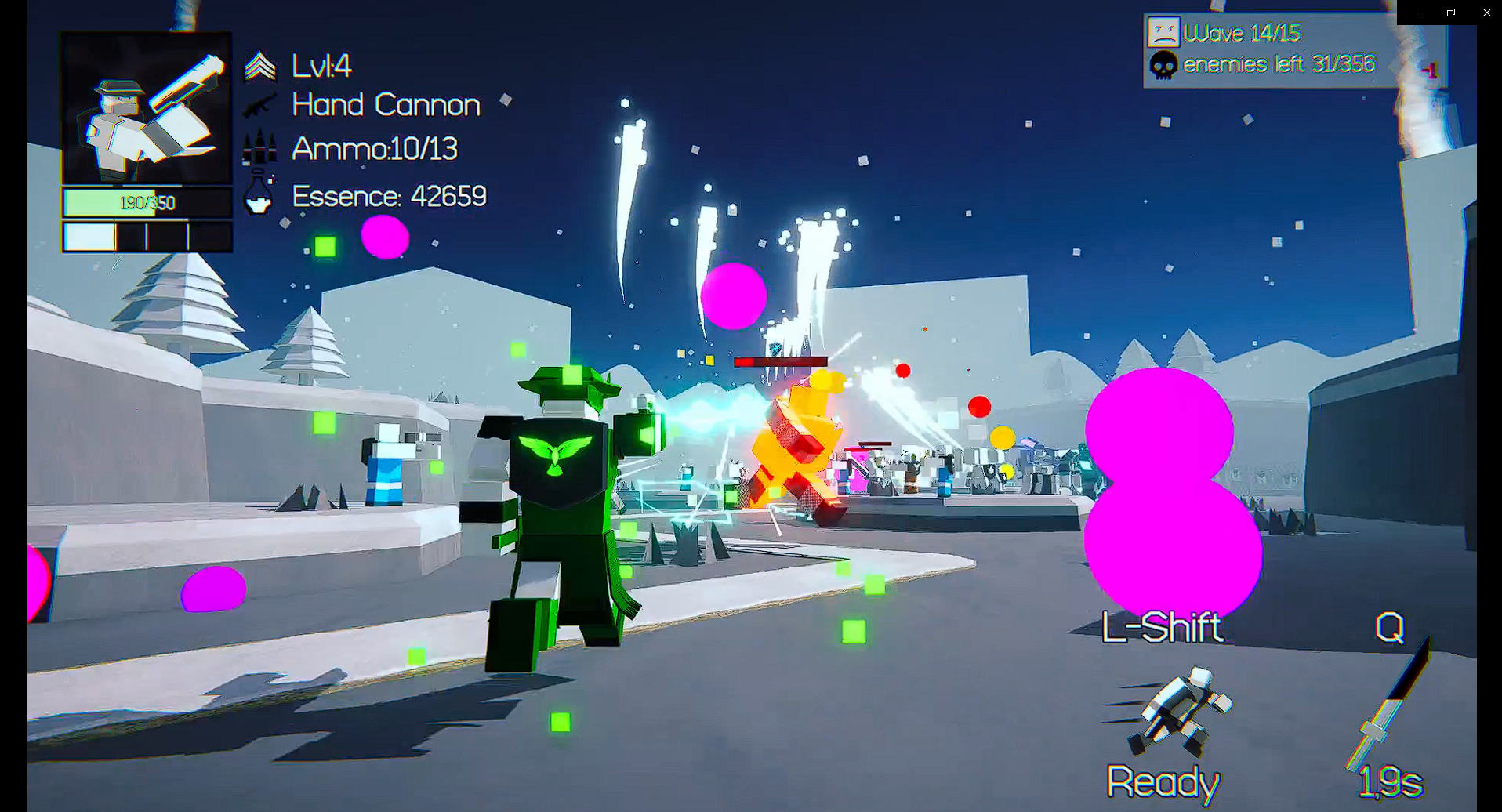 E - Use items, spawn/ upgrade towers or use shop