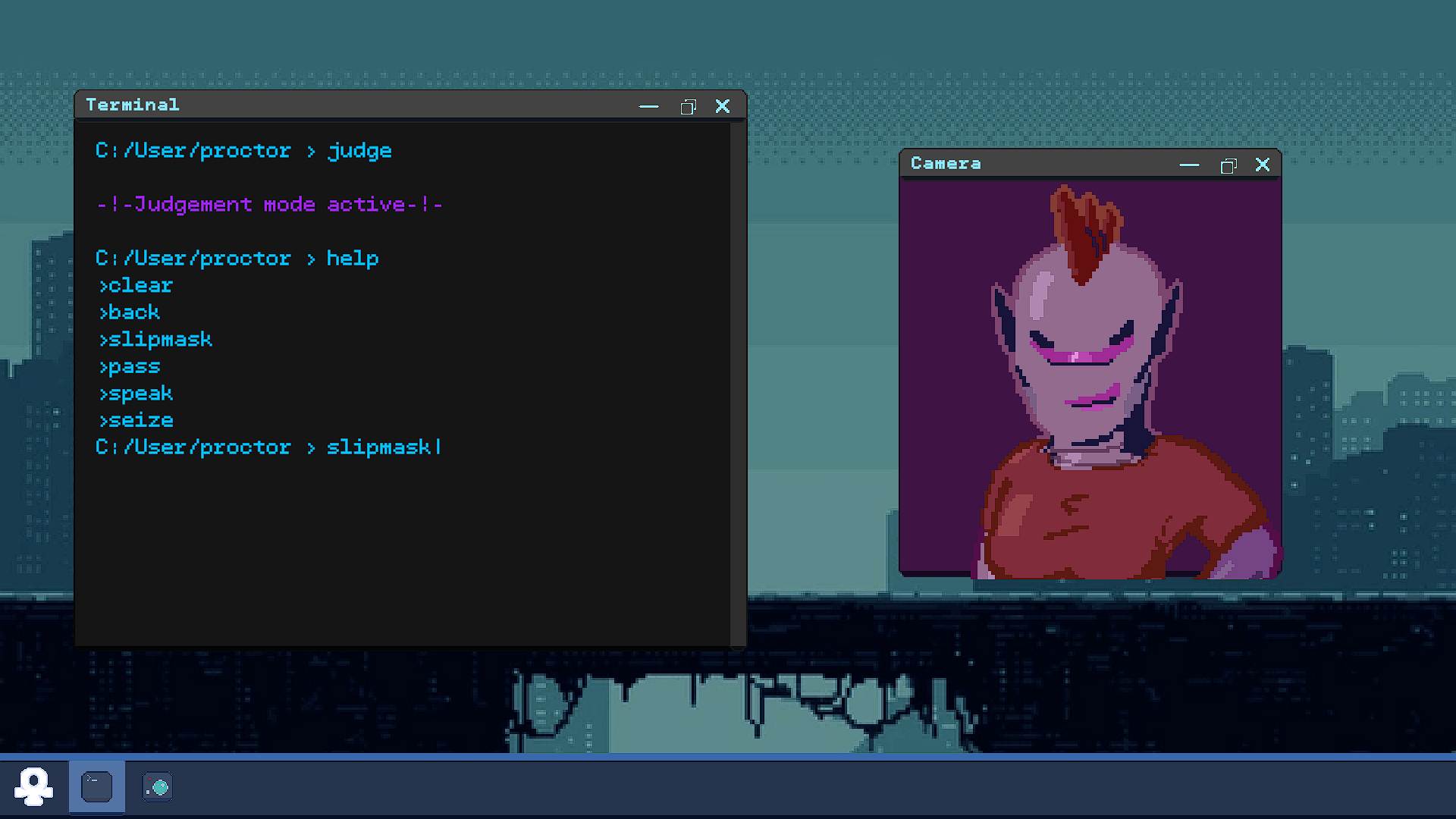 Take role as a Proctor, equipped with a desktop terminal you can use commands and a camera to interrogate individuals